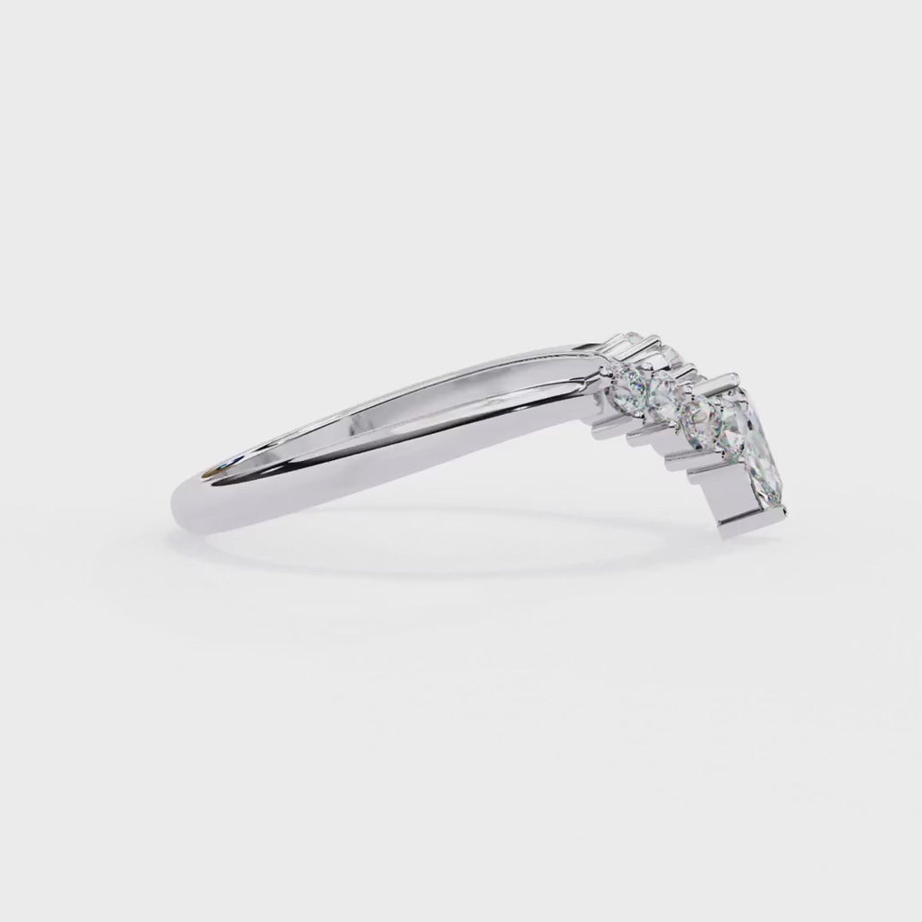 This versatile diamond crown ring is an ideal companion for a solitaire engagement ring, creating a captivating bridal set. The pointed design of the marquise stone and the gentle curve of the band allow it to sit perfectly against another ring. Whether worn as a wedding band, a standalone fashion piece, or a striking addition to your stack, this ring offers a blend of sophistication and unique charm.