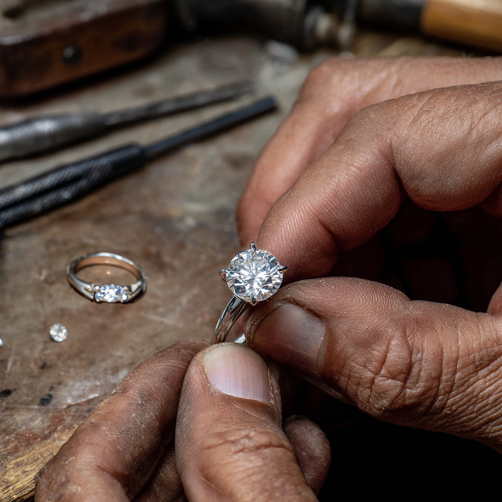 We work with lab-grown diamonds that are chemically and optically identical to mined diamonds but far more ethical and sustainable. By producing jewellery in-house, we also reduce waste, energy use, and unnecessary transportation.